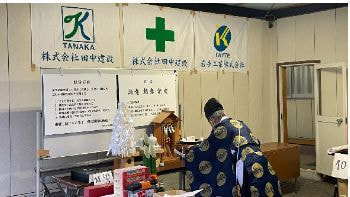 令和7年の仕事始めにあたり、今年一年全社員の健康と工事の安全を祈願し、安全祈願祭を執り行いました。