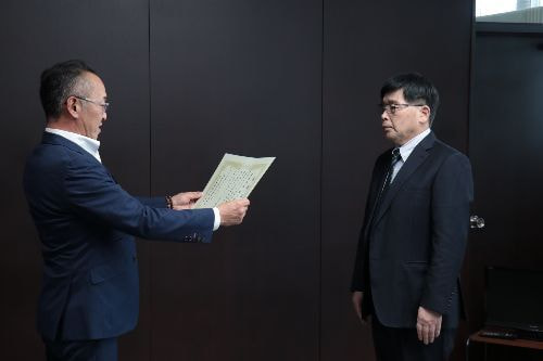 合わせて、新組織編制での役職者への辞令が交付されました。